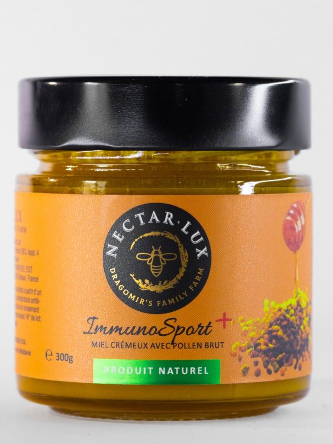 Ingrédients : 85 % miel non pasteurisé, 15 % pollen brut.