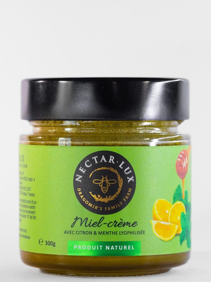 Nous avons créé une combinaison de miel multifloral naturel avec de la menthe et du citron lyophilisés. Le miel crémeux, issu de notre propre rucher, associé à la menthe et au citron lyophilisés, forme un mélange délicieux et sain, apprécié aussi bien des enfants que des adultes.